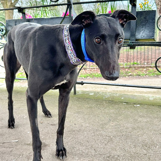Kim is an ex-racing greyhound (racing name: Sunshine Beauty)